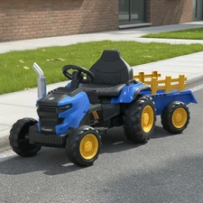 Дитячий електромобіль-трактор M 6261EBLR з причепом, пультом 2.4G, EVA-колесами та шкіряним сидінням